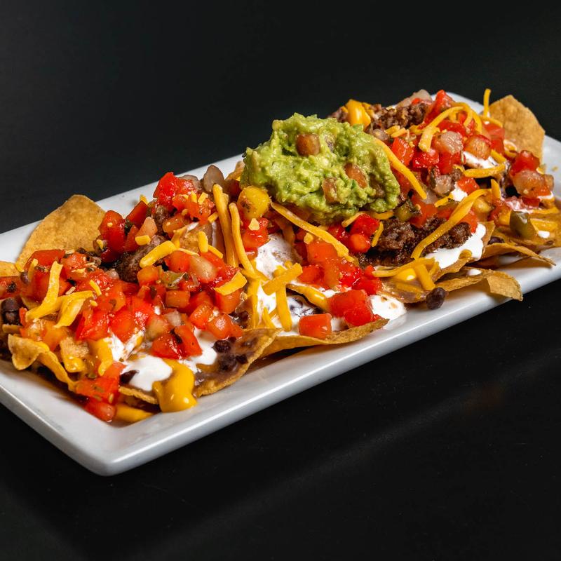 Fresh fried tortilla chips, cheddar cheese, black beans, pico de gallo, sour cream and guacamole | Add a choice of protein (Chicken, Steak, Shrimp or Ground Beef) +$6.00